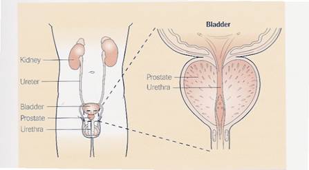 As the prostate gland grows it can squeeze the water pipe (urethra), or the neck of the bladder can be tight or enlarge. These can make it more difficult for the urine to flow freely and the bladder works harder to force urine through the narrowed waterpipe. This leads to the bladder wall becoming thicker and more sensitive, and makes it more difficult for the bladder to empty completely.